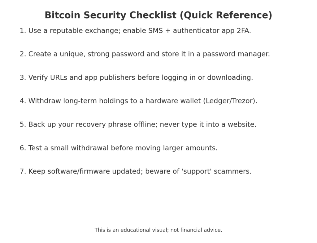- Skipping Security: Not enabling 2FA or neglecting cold storage can cost you your coins.