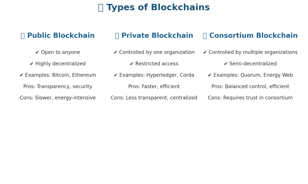 There isn’t just one kind of blockchain. Different industries use different models depending on their needs.